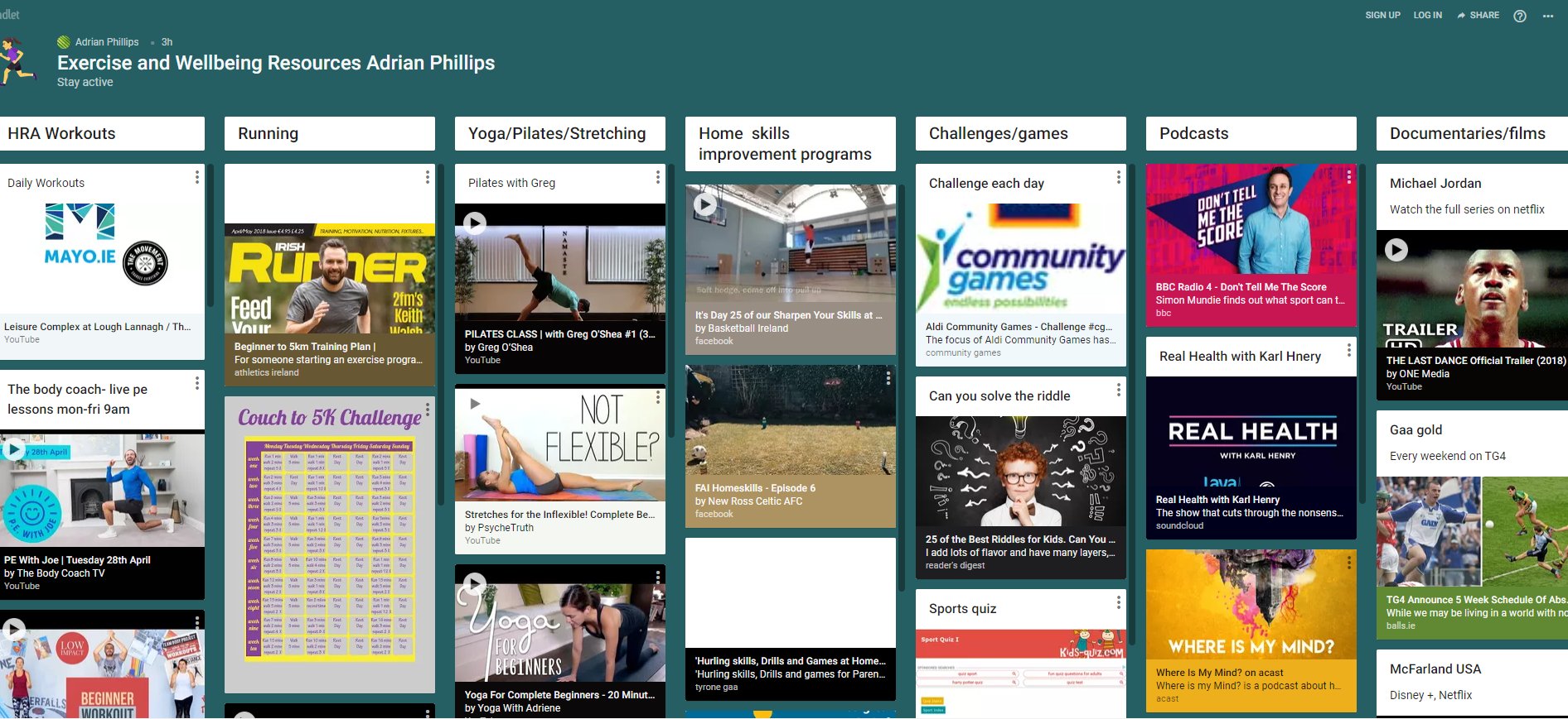Mr. Phillips has developed this fantastic Exercise and Fitness Padlet. It includes links to workouts, Yoga classes, sports quizzes, nutrition, Sports films and documentaries, podcast and challenges.